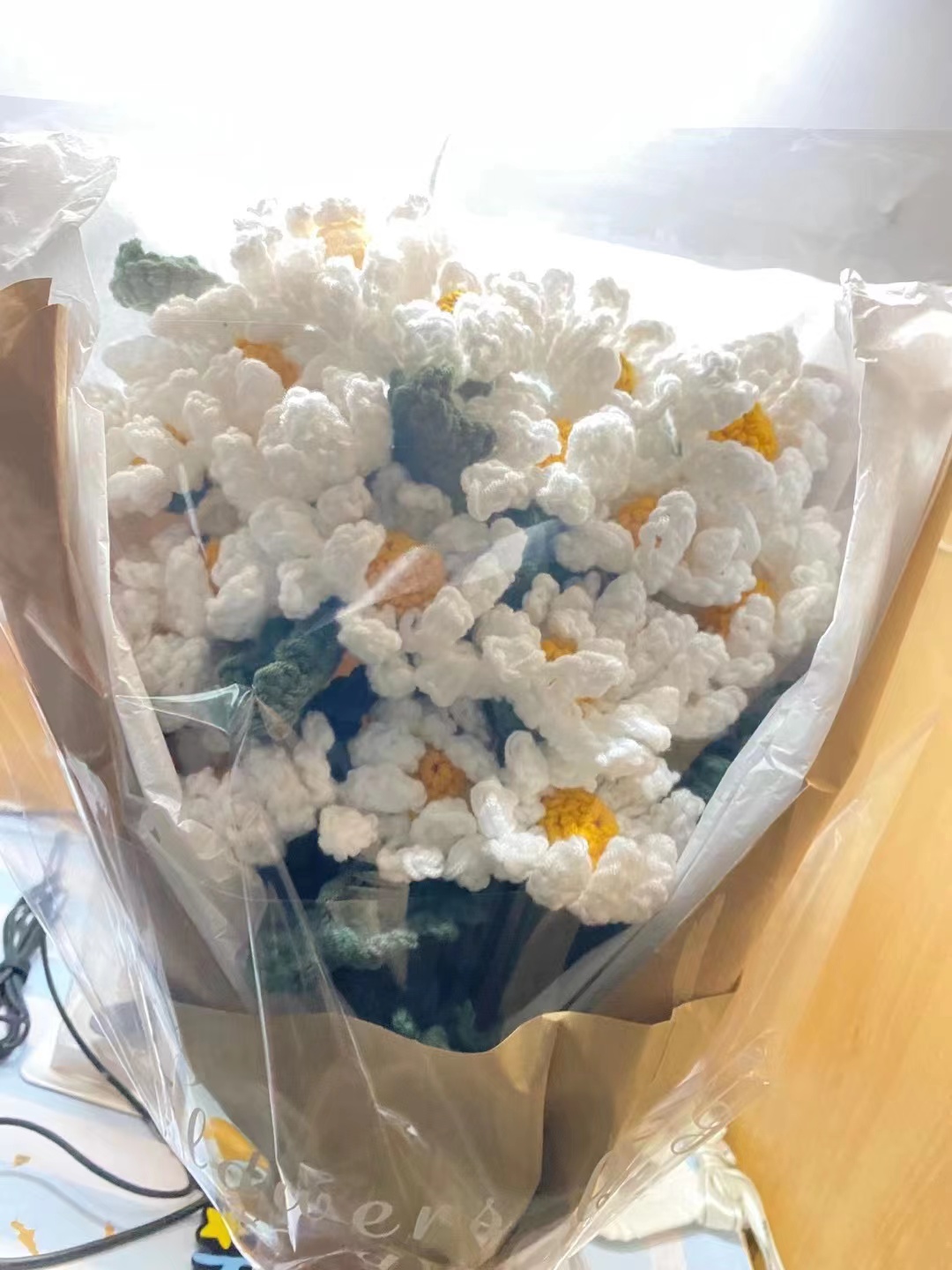 室友的毛线,阔别已久的钩针,带给我新的想法。我好像找到了新动力,便给自己立了个小目标,我想为我的朋友们准备一个纯手工的小礼物,等疫情结束的时候送给他们。我打算做几个钩花杯垫,虽然不是很贵重的小玩意,但我希望用它的人会记的我们之间的友谊。跟随着视频从最基础的短针学起,一直到超长针;从最简单的圆形出发,再到花瓣、小熊的形状。我越来越熟练,现在已经达到看一眼图片里的样式便知道如何动手做出来,这也算是我在疫情期间的小小收获,这就是所谓“成长“的实际感受了吧。我还把我钩花的过程记录了下来,发到学校和学院的各个分享平台和大家一起分享做手工的快乐。