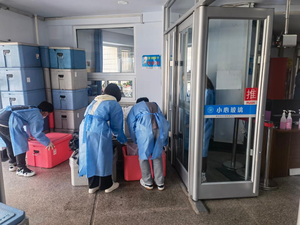 学生干部、党员也都积极参加到志愿工作中,搬运物资、发放餐水、协助核酸检测工作......男生们主动抬重物,女生们则负责清点分发。每当餐车缓缓驶来,志愿者们各自就位,按楼层分餐,工作早已做得熟练而有序。不管是学院老师,还是学生志愿者,不管做着什么工作,都在朝着防控疫情的中心点发力施策。在由志愿者们保障着日常基本生活的同时,同学们也没有消极怠工,在寝室自觉学习,看文献、开组会......尽管实验室的大门此刻不能向我们敞开,但在春天播种下努力的种子,定会在未来开花结果。在同学们自发组建的六公寓互助群中,一节电池、一管牙膏、几包零食......慷慨的分享互助,传递着的不仅是同学间的友谊与温暖,更是同处境面前彼此鼓励扶持的信心与安心。因为命运相连,所以心心相通。