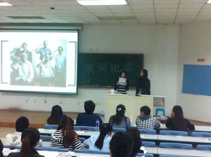 活动当天,由班主任管清香老师和三名同学组成了评分小组,对每名参赛选手进行科学客观的点评及打分。然后,在主持人的宣布下,紧张的比赛有条不紊的开始了,选手按照事先抽取的顺序一次上台比赛,或慷慨激昂,或婉转动听,或发人深省,或激人奋进,比赛持续了大约四个小时。最终由班主任老师进行总体点评,并对取得好成绩的同学进行发放奖品。