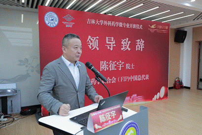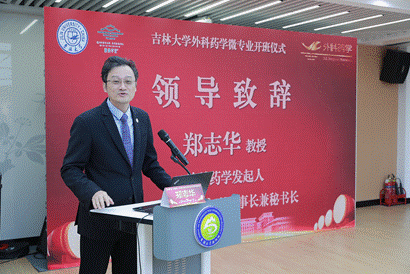 马杰院长、外科药学发起人/广东省药学会副理事长兼秘书长郑志华教授、吉林大学教务处孙贺副处长、国际药学联合会中国总代表陈征宇院士,为全国首个外科药学微专业的顺利开班致辞。嘉宾们从微专业建设、平台搭建与学科融合创新、专业与社会价值、国际发展前景等多角度发言,鼓励首批学员在学习中创新,推动外科药学专业化、精准化发展。