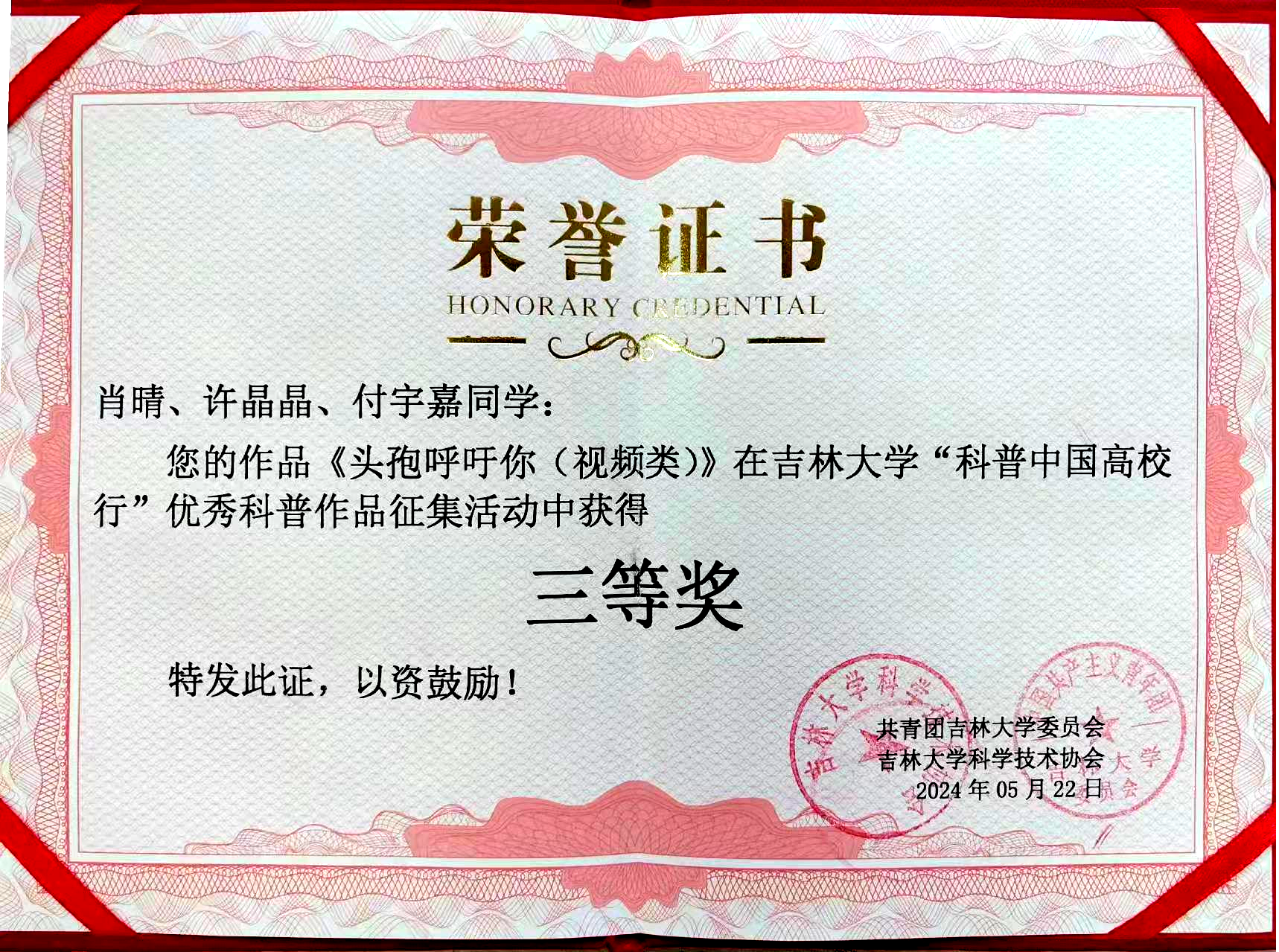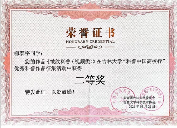 本次大赛由吉林大学科学技术协会主办,旨在激发大学生的科普创作热情,培养科普人才。大赛共收到来自各学院的参赛作品518件,经过专家组的严格评审,最终评选出一等奖5名,二等奖15名,三等奖28名等奖项。