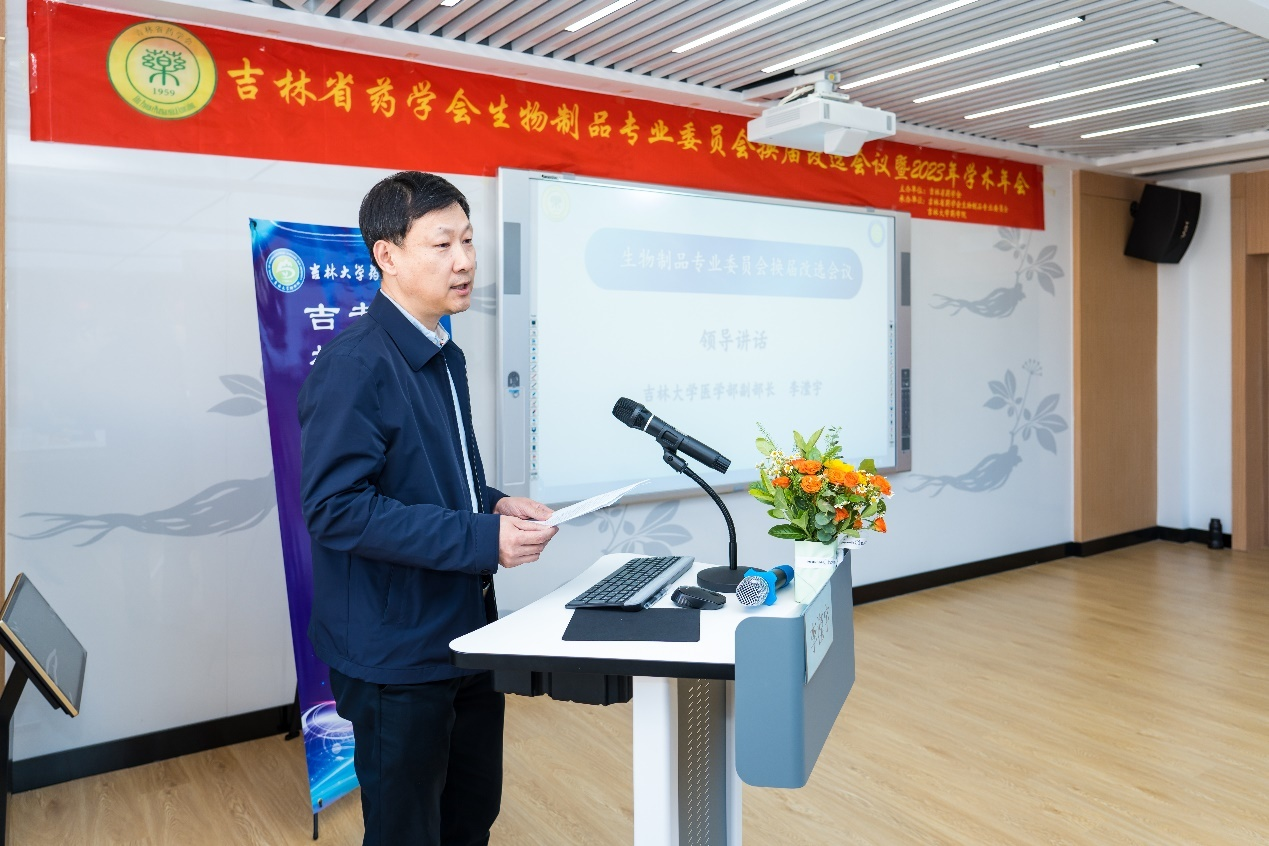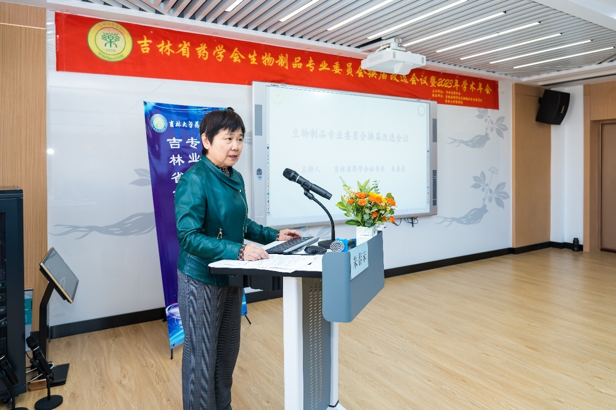 换届选举会议由吉林省药学会秘书长朱春未主持。首先,吉林大学医学部副部长李滢宇代表承办单位进行致词。在致词中指出,在省药学会的领导下,生物制品专业委员会将迎来快速发展,能够广泛吸纳全省生物制品专业领域的优秀人才,快速提升我省医药产业实力,推动医药健康产业高质量发展贡献更大的力量!