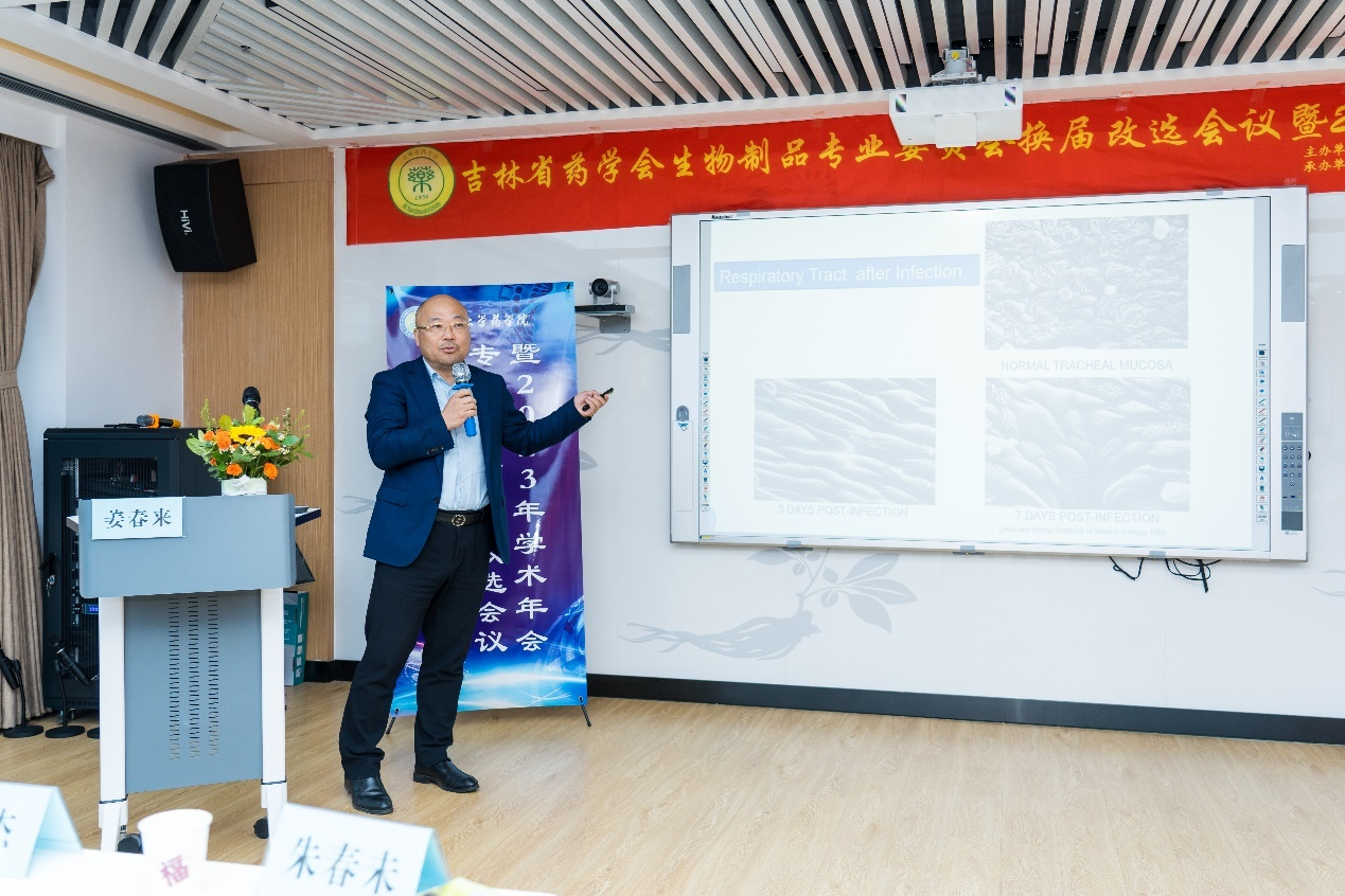 接着,举行了2023年学术会议,会议分别由吉林省药学会生物制品专业委员会常务委员,东北师范大学生命科学院教授鲍永利、中国科学院长春应用化学研究所研究员丁建勋主持。会议邀请国家纳米科学中心研究员丁宝全和吉林大学生命科学学院教授姜春来两位专家作题为《DNA纳米机器的可控组装及药物递送应用》和《流感疫苗研发进展》的专题学术报告。