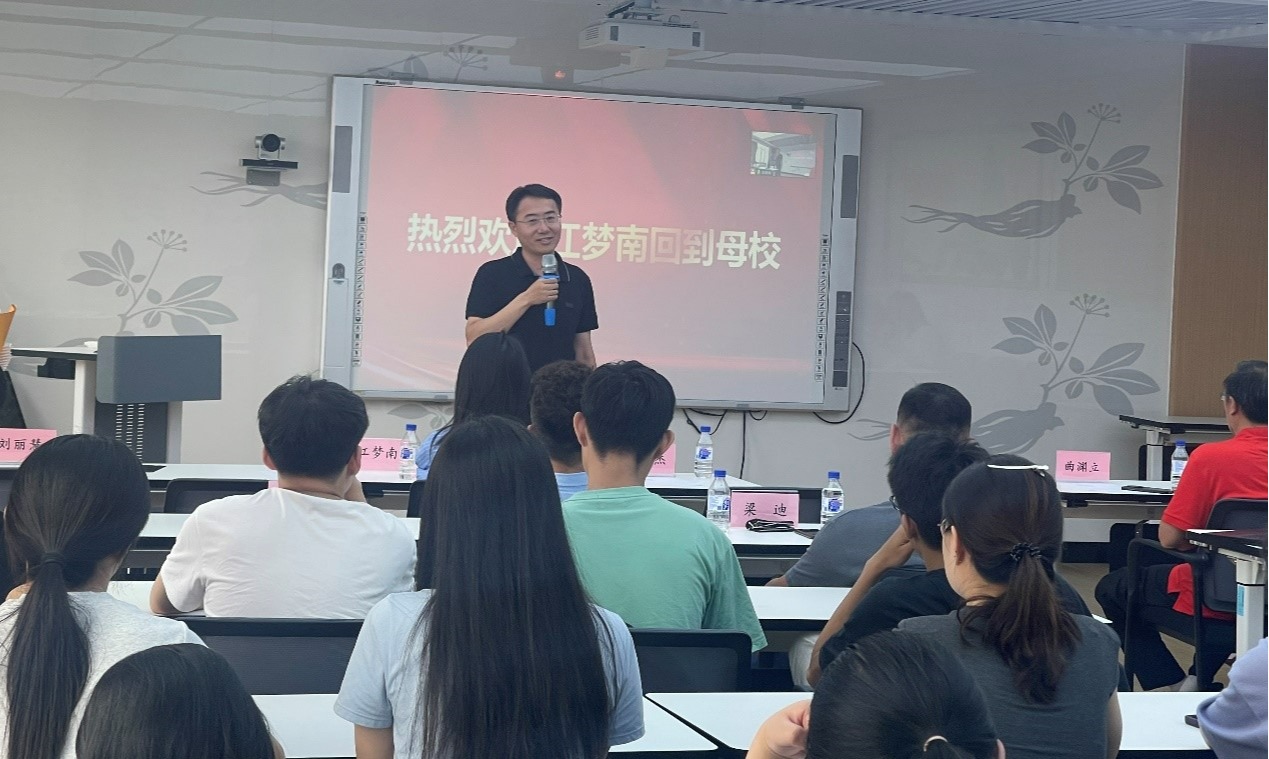 江梦南的硕士导师杨晓虹教授讲述了她记忆中梦南的艰难求学之路,并鼓励同学们,在前进道路上一定会遇到困难,克服困难并且解决问题的过程,就是不断提高自己,不断完善自己的过程,所以无需害怕困难。并寄语梦南:保持初心、戒骄戒躁,常怀感恩之心,取得更大的进步!