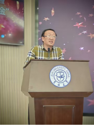 党委书记曲渊立致辞。曲书记在致辞中首先表达了对吉林省博大伟业制药有限公司大力资助的感谢,并向同学们详细介绍了博大伟业制药有限公司及“博大伟业”奖学金设立的意义。此外,曲书记还代表永利娱乐场