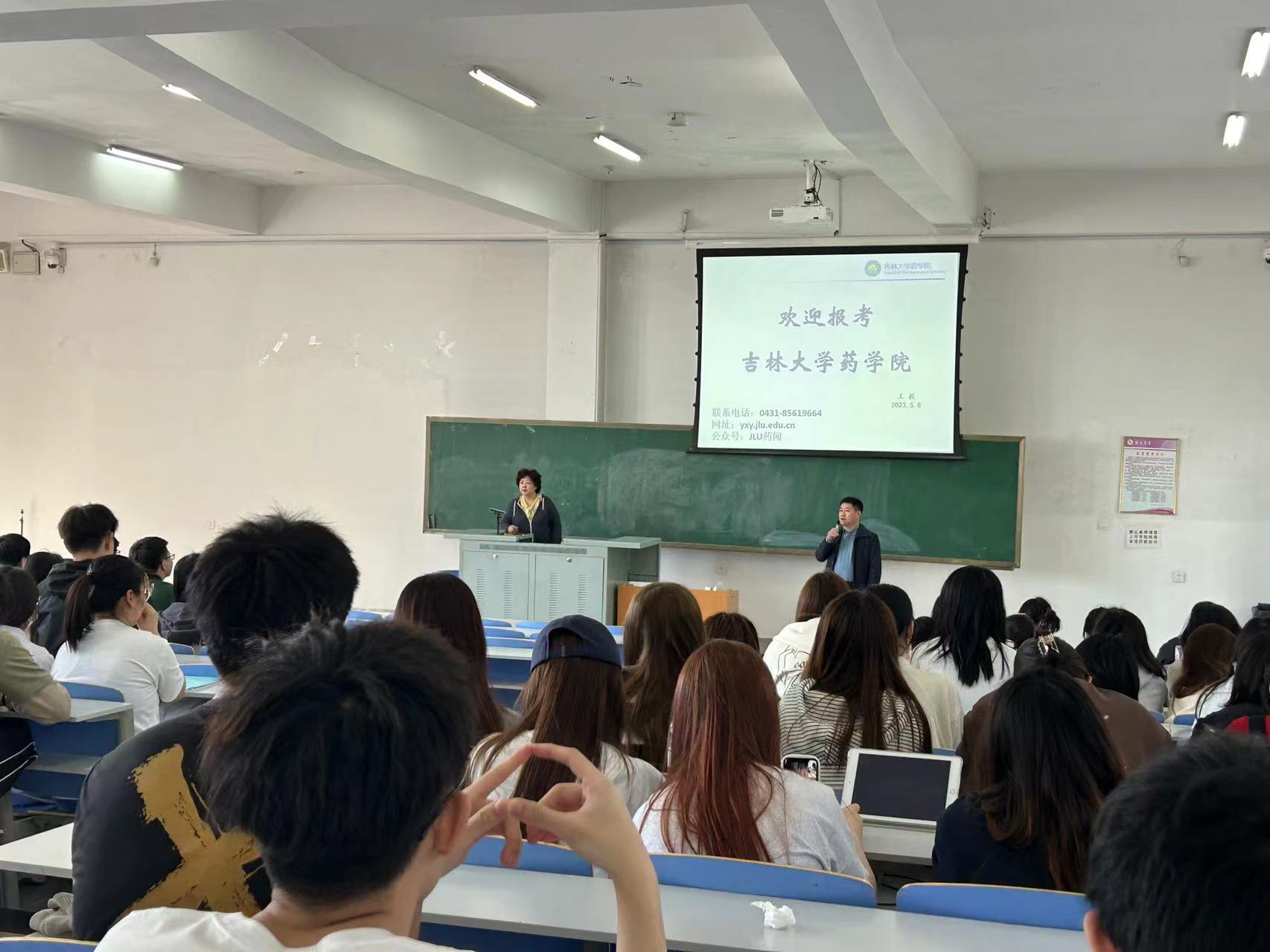 大三学生介绍了吉林大学药学院的学科建设、科研平台、招生政策、导师信息、研究生就业等情况,并就学生关注的录取比例、复试政策和名额分配等问题进行了详细解答。