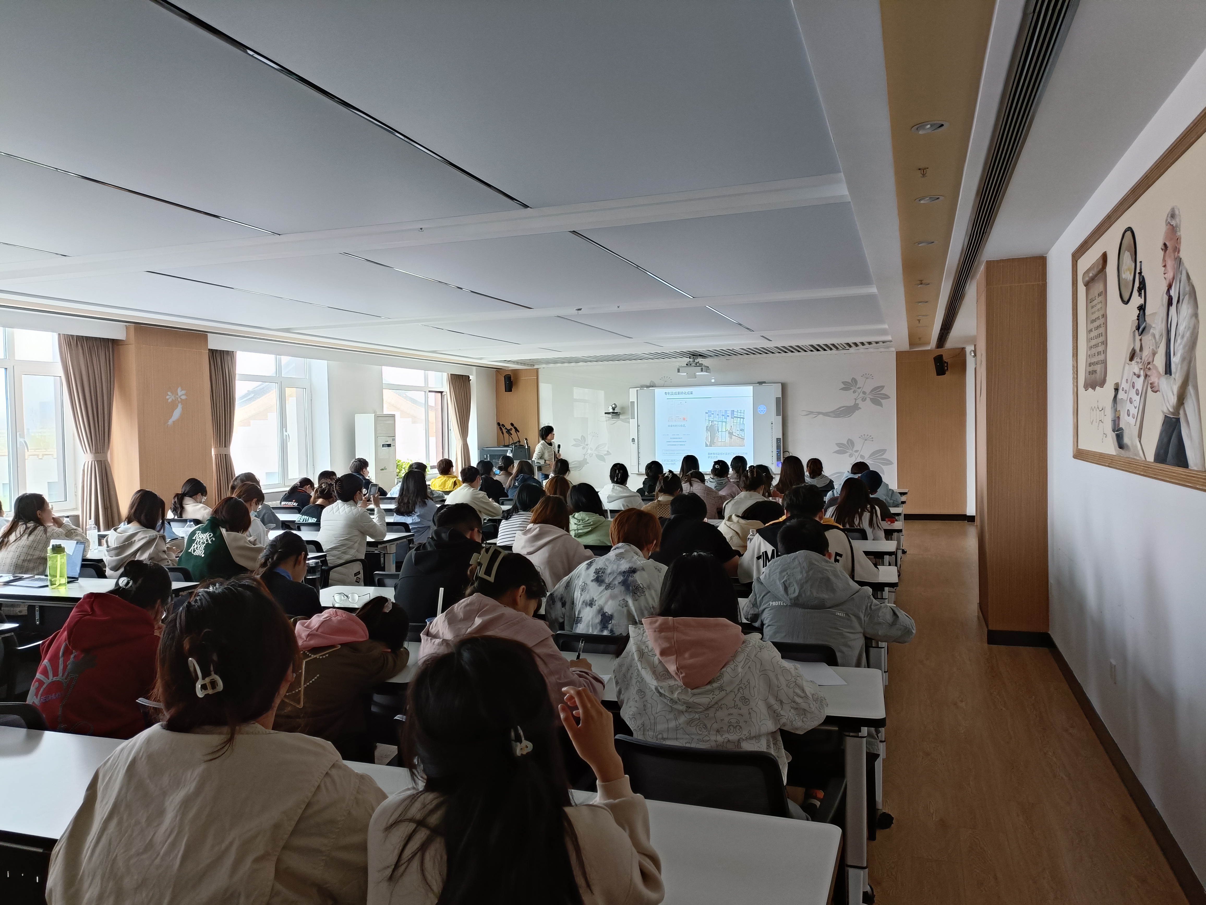 于2023年4月17日下午14:00举办了优秀校友学术讲座,共有60名研究生、30名本科生参加了本次讲座。主讲嘉宾为毕业于我院药学专业的2006级优秀校友李迎君。李老师以《靶向冠状病毒非结构蛋白的小分子抑制剂的研发》为题,为大家做了精彩的学术报告。