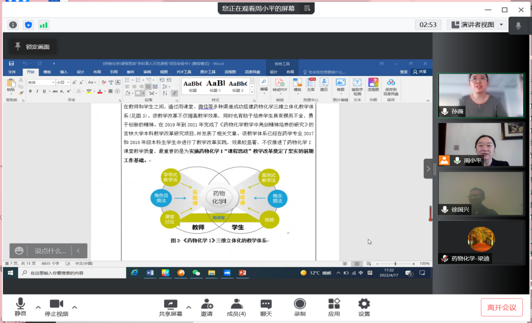 4.强化培训 提高教学水平。为加强学院教师教学基本功,提升课堂教学能力,进而提高学院本科教学质量,学院组织开展了2021-2022学年春季学期医学微格示范教学活动,共有13名教师进行了微格教学展示,4位专家进行点评。此次活动,全体授课教师受益匪浅,教学水平整体有所提高。