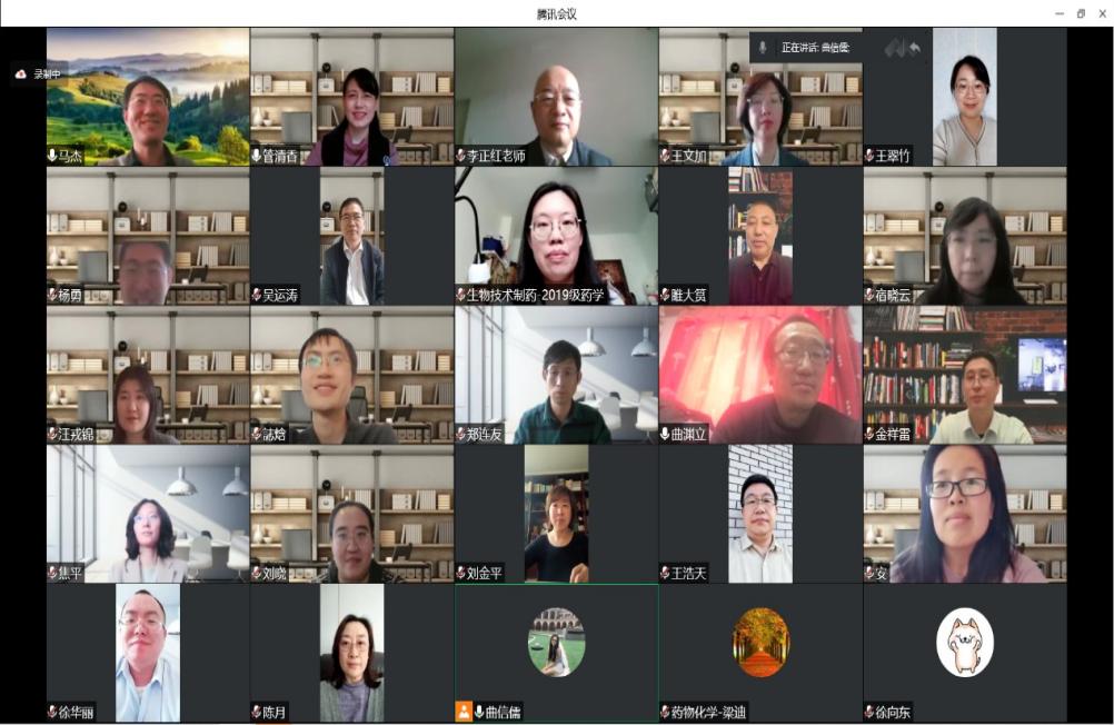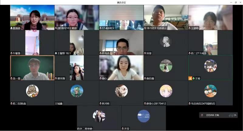 学院严格按照教育部推进高校课程思政建设的相关要求,督促在线教学授课教师切实落实课程思政建设。课前需有5分钟防疫精神宣讲,将疫情“危机”转化为思政教学“契机”。为了鼓励学生积极面对抗疫,安心学习,药物化学教研室采取多种形式进行宣传教育。徐国兴主任利用歌曲、魔术、二人转等视频进行抗疫必胜宣传;周小平老师在课前抗疫宣传中,采用更贴近学生自身的内容,并与学生互动,通过弹幕共同为吉林大学加油。孙薇老师利用《我的白大褂》系列短片进行抗疫宣传;梁迪老师利用抗原抗体核酸检测相关专业知识视频短片进行宣传。《生物信息学》课程解桂秋老师,主讲内容为生物数据库的查询。从SARS-CoV-2的基因组序列查询展示genome数据库的查询方法,对基因组信息的解读引申出新冠药物研发的靶点和策略,引导学生的科研思维和国际视野。