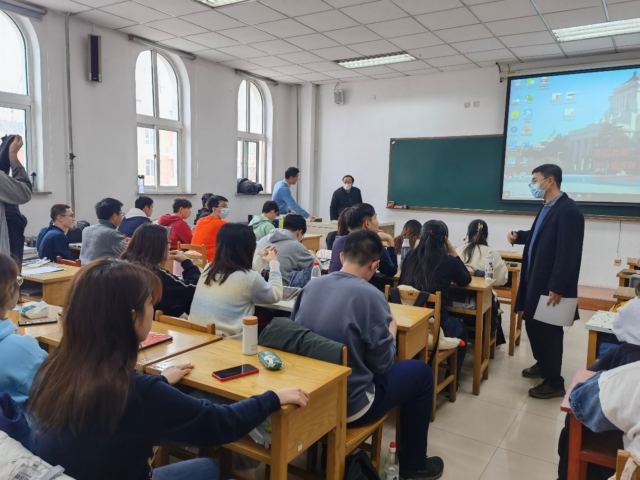 院长马杰、党委书记曲渊立及教学副院长管清香深入教学一线,对学生课堂出勤情况、教师教学情况、课堂纪律、疫情防控等方面进行检查。