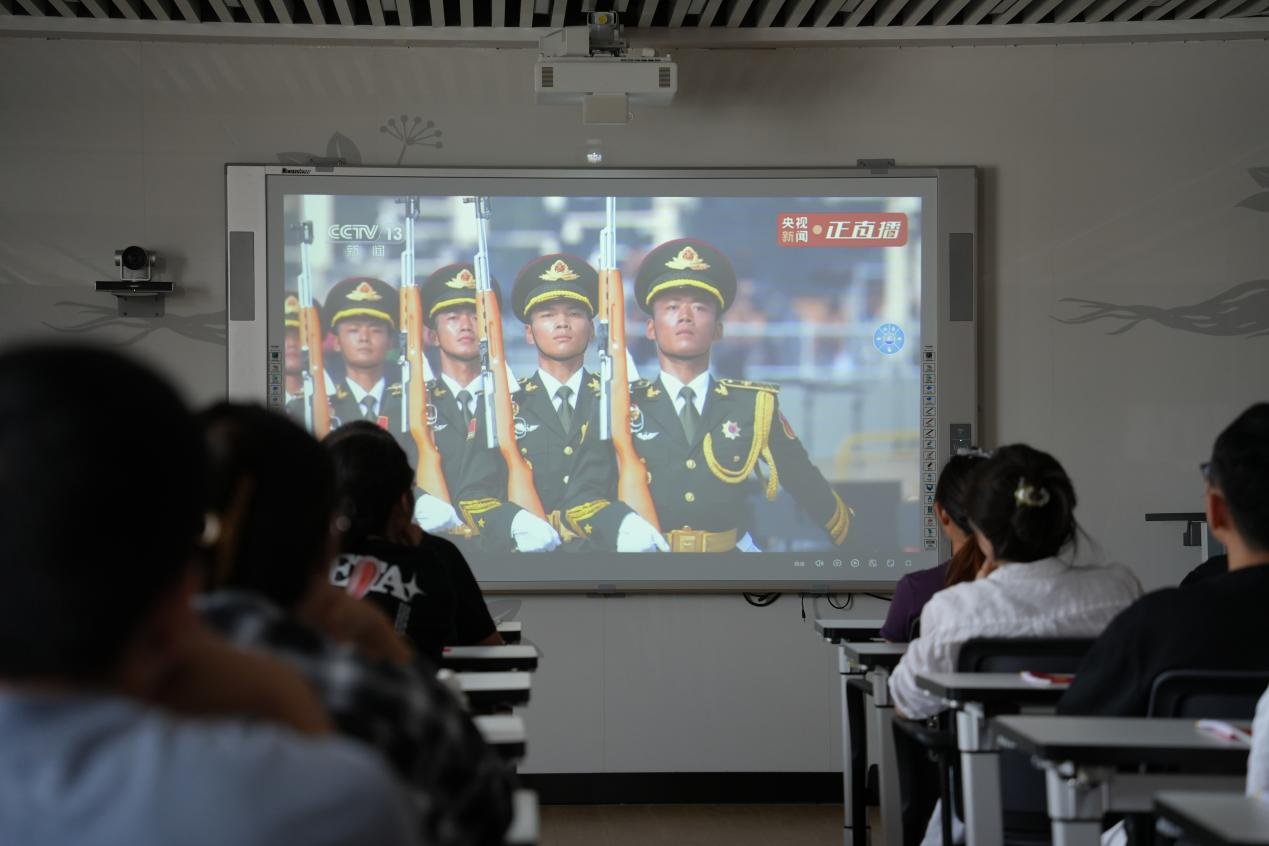 组织师生集体观看大会实况直播,共同回顾峥嵘岁月,缅怀革命先烈,弘扬抗战精神,凝聚奋进力量。