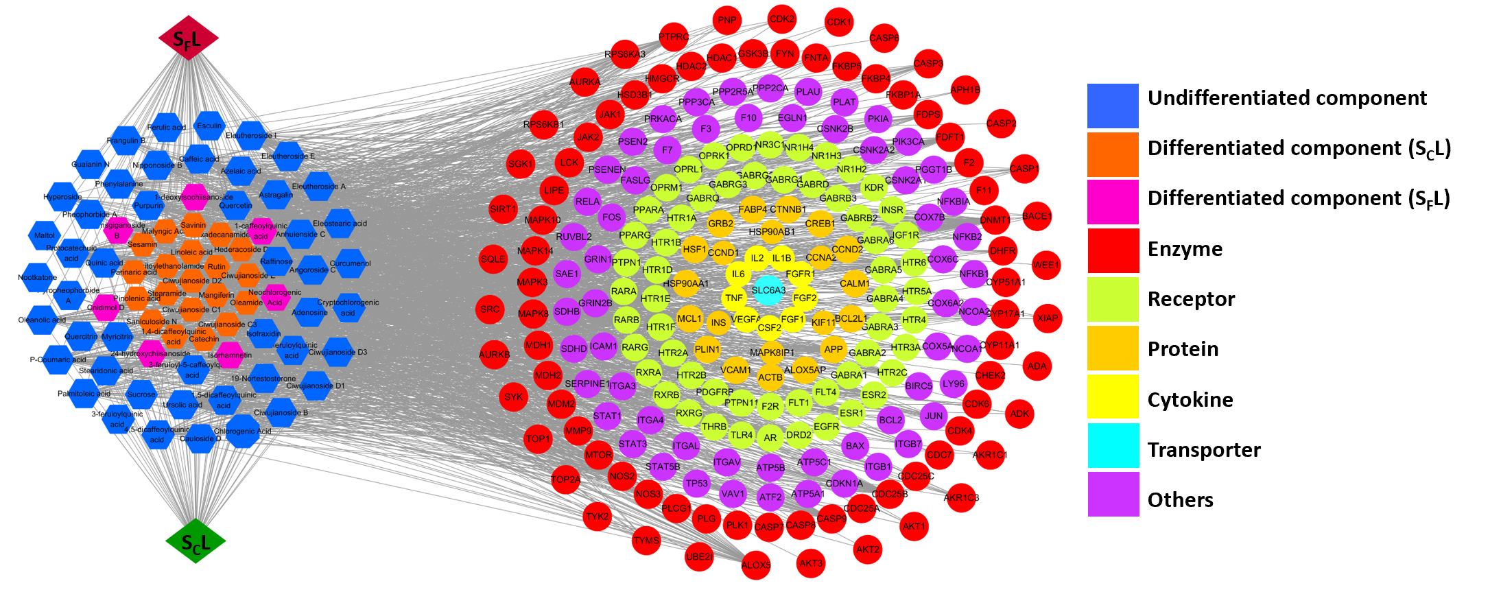 图4“SCL与SFL特征成分-核心靶点-失眠”互作网络